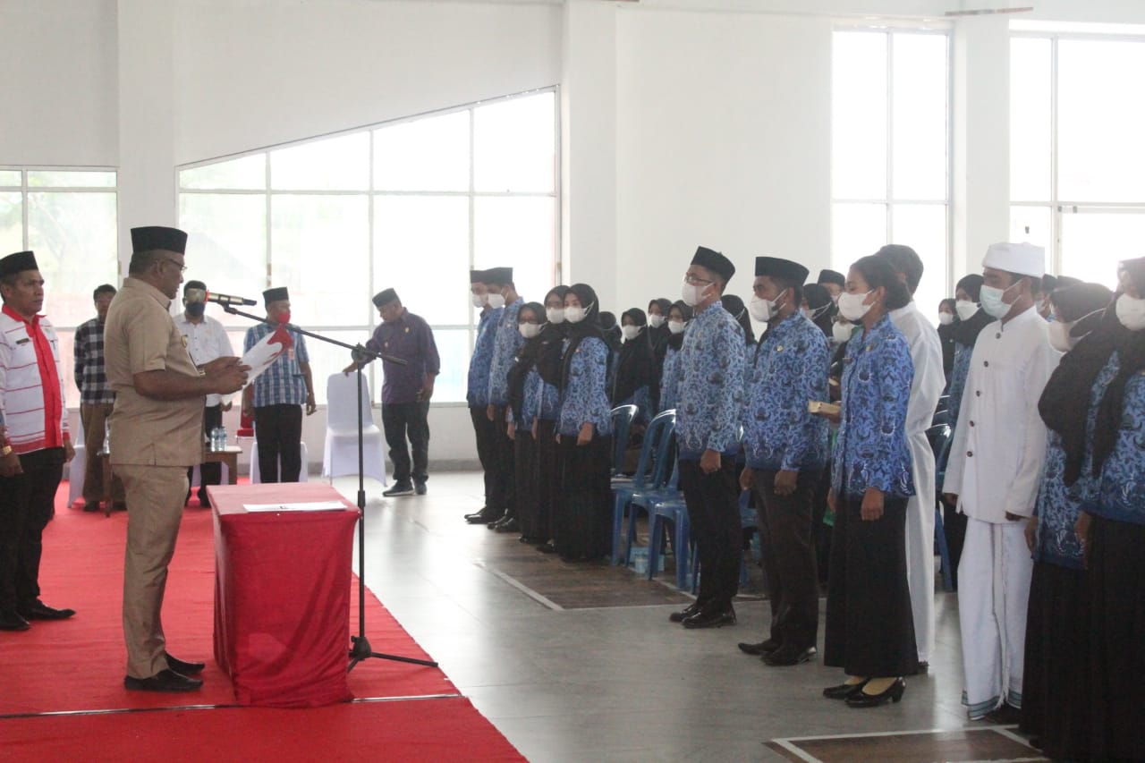 “Jangan masuk di dunia politik, kerja saja. Pegawai itu perpanjangan tangan pemerintah daerah kepada masyarakat. Apa yang diucapkan pimpinan ikuti jangan lagi berlayar sendiri, serta kerja harus tulus dan ikhlas,” tegasnya.