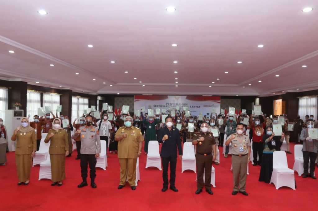 Menteri Agraria dan Tata Ruang/Badan Pertanahan Nasional (ATR/BPR) Sofyan Djalil dalam sambutannya mengungkapkan, pembagian sertifikat tanah adalah bagian dari stimulus dalam rangka meningkatkan ekonomi masyarakat di tengah pandemi Covid-19. Karena dengan sertifikat masyarakat berkesempatan mendapatkan akses permodalan, di samping adanya kepastian hukum atas tanah mereka.