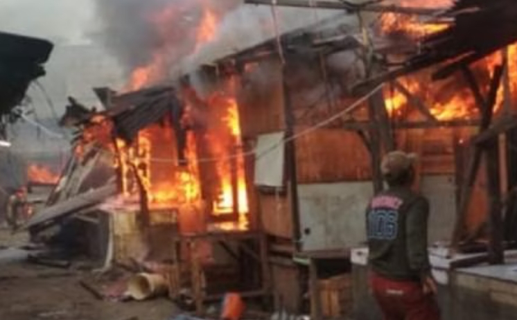 Dalam video tersebut si jago merah tampak melahap beberapa kios. Asap hitam membumbung tinggi di lokasi kejadian.
