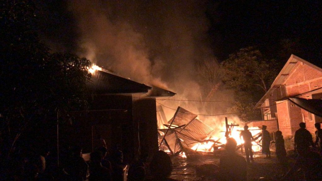 “Tepat pukul 20.00 wita tiba-tiba api berkobar dari arah dapur rumah kayu tersebut yang mana banyak tumpukan kayu bakar kering tepat di samping dapur tungku sehingga api berkobar sangat cepat,” ungkapnya, kamis (24/6/2021).