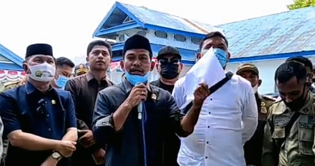 Ketua DPRD Buton Tengah Bobi Ertanto, bersama sejumlah Anggota DPRD Buton Tengah langsung menemui massa aksi di depan kantor DPRD Buton Tengah.