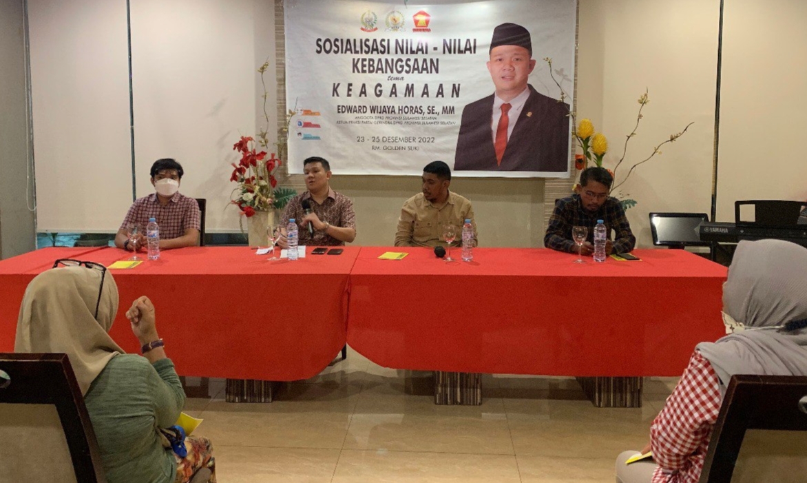 REPUBLIKNEWS.CO.ID, MAKASSAR – Anggota DPRD Provinsi Sulawesi Selatan, Edward Wijaya Horas menggelar kegiatan sosialisasi nilai-nilai kebangsaan (sosbang) dengan tema keagamaan. Bertempat di RM Golden Suki, Jalan Sultan Hasanuddin, Kecamatan Ujung Pandang, Kota Makassar, Jumat (23/12/2022).