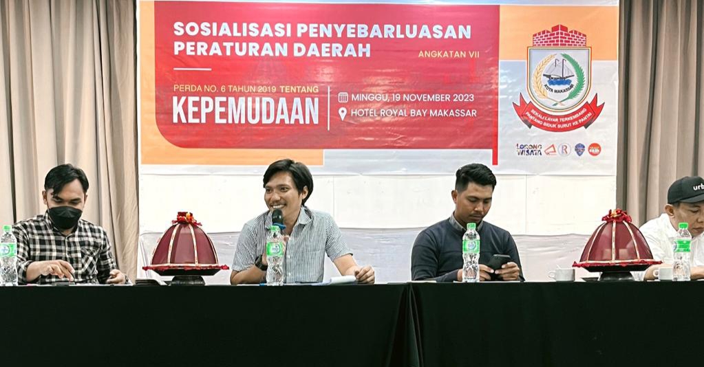 REPUBLIKNEWS.CO.ID, MAKASSAR – Sekretariat DPRD Kota Makassar menggelar sosialisasi penyebarluasan peraturan daerah (Perda) Nomor 6 Tahun 2019 tentang Kepemudaan. Bertempat di Royal Bay Hotel Makassar, Jalan Sultan Hasanuddin, Makassar, Minggu (19/11/2023).