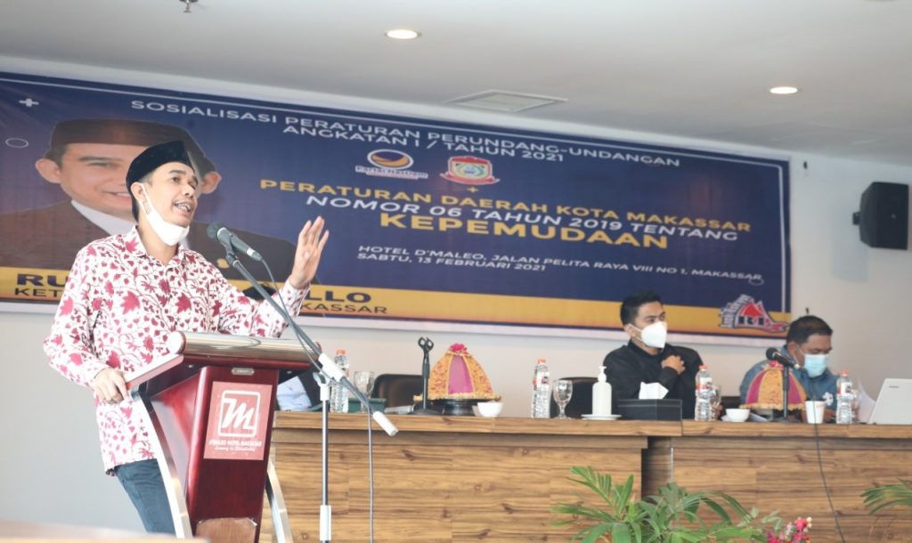 REPUBLIKNEWS.CO.ID, MAKASSAR — Ketua DPRD Kota Makassar Rudianto Lallo, menggelar Sosialisasi Peraturan Daerah (Perda) tentang Kepemudaan, di Hotel D’Maleo, Jalan Pelita Raya, Sabtu (13/02/2021).