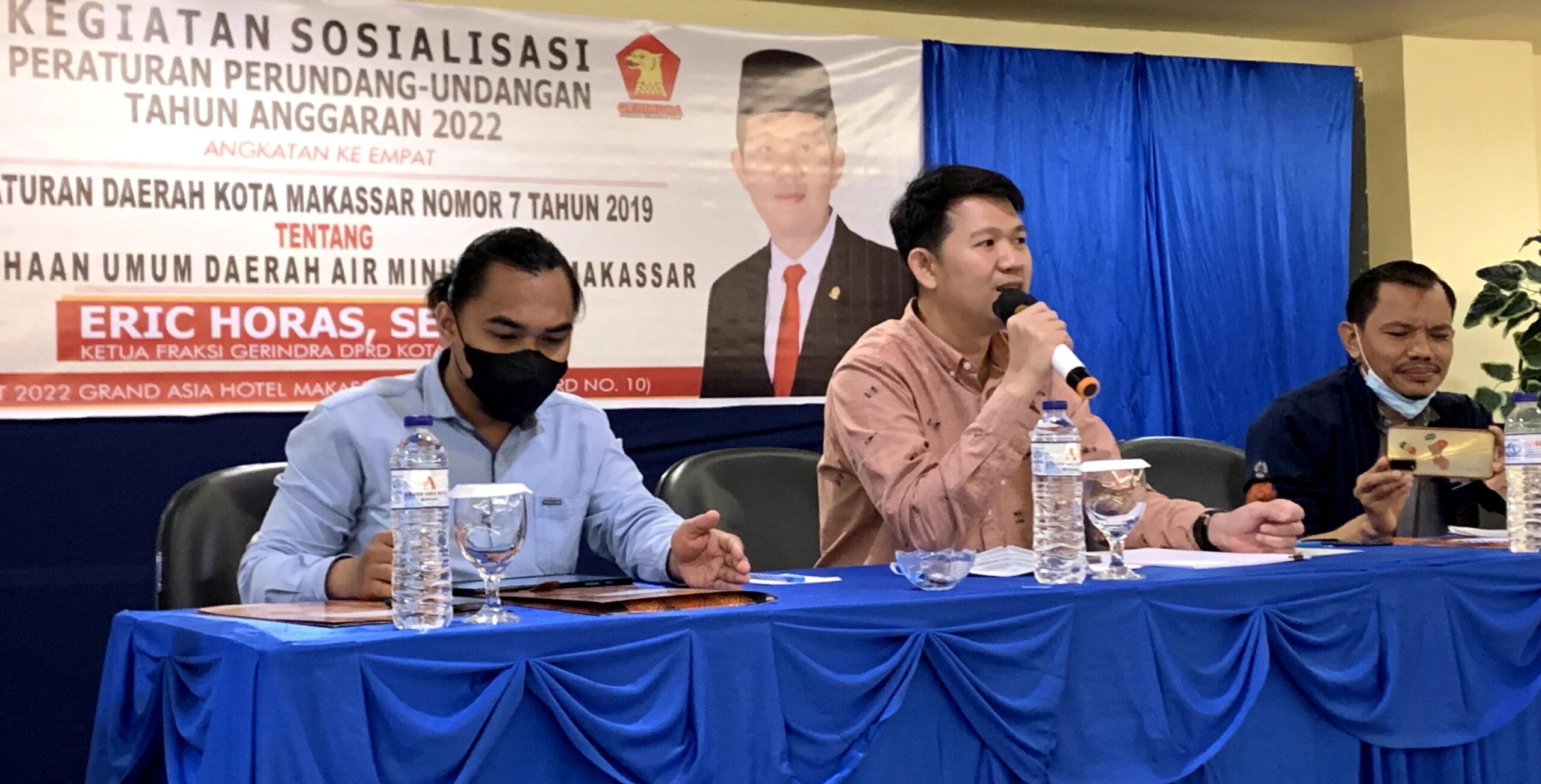 REPUBLIKNEWS.CO.ID, MAKASSAR – Legislator DPRD Kota Makassar, Eric Horas menggelar kegiatan sosialisasi Peraturan Daerah (Perda) Kota Makassar Nomor 7 Tahun 2019 tentang Perusahaan Umum Daerah (Perumda) Air Minum Kota Makassar, Senin (28/3/2022). Kegiatan sosper ini digelar di Hotel Grand Asia, Jalan Boulevard, Makassar.
