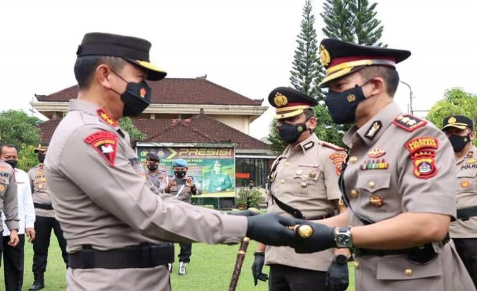 Upacara Sertijab Kapolresta Denpasar dari Kombes Pol Jansen Avitus Panjaitan kepada AKBP Bambang Yugo Pamungkas, Sesuai dengan Surat Keputusan Kapolri Nomor Kep/ 95 / I / 2022 tanggal 24 Januari 2022.