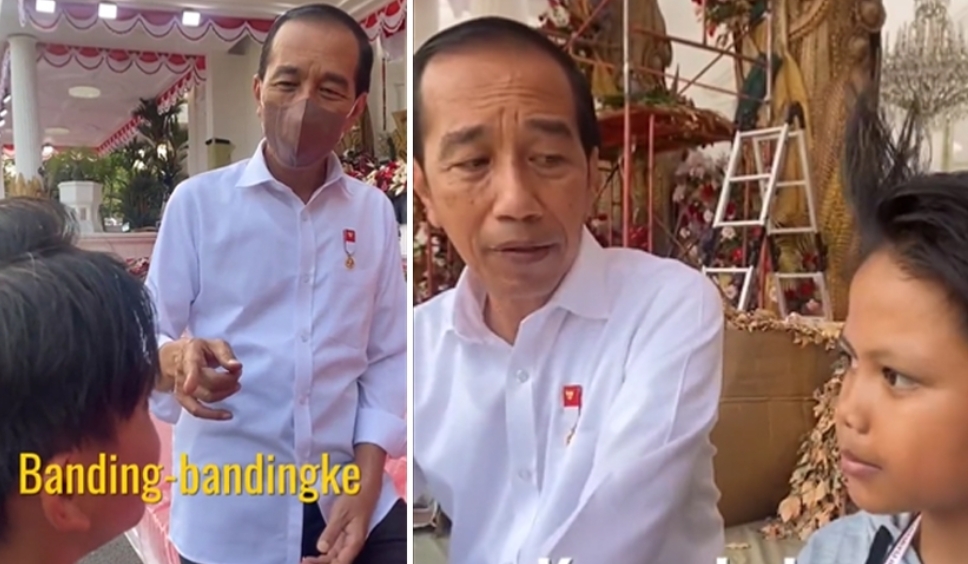 Jokowi bertemu dengan Farel dan mendengarkan penyanyi cilik itu menyanyikan sebait lagu ‘Ojo Dibandingke’.