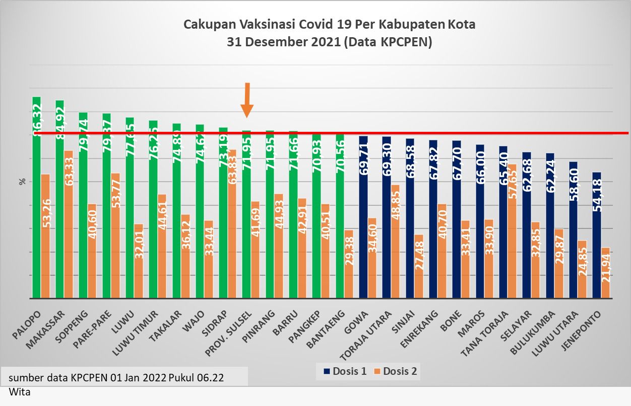 “Kita sudah mencapai 70,06 persen, malam ini,” kata dr Andi Ihsan, di sela pemantauan pusat keramaian di malam tahun baru, di Pantai Seruni, Jumat (31/12/2021).