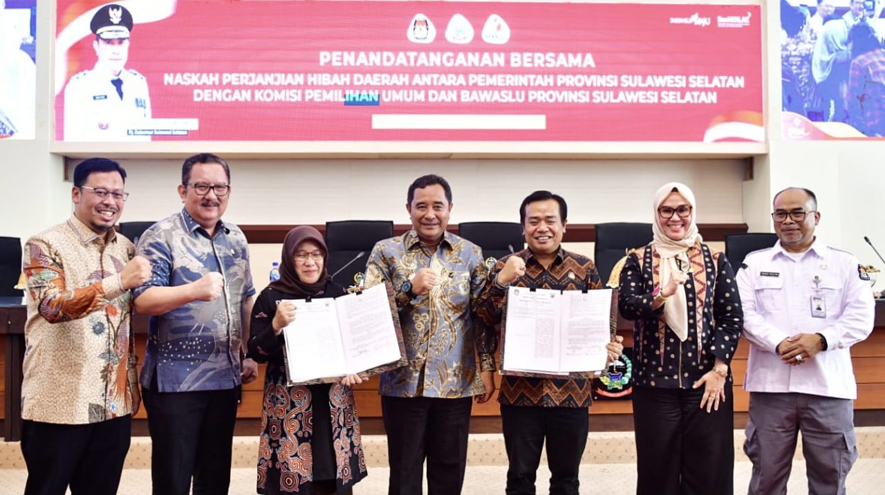 REPUBLIKNEWS.CO.ID, MAKASSAR — Pemerintah Provinsi Sulawesi Selatan bersama Badan Pengawas Pemilu (Bawaslu) dan Komisi Pemilihan Umum (KPU) melakukan penandatanganan NPHD (Naskah Perjanjian Hibah Daerah) untuk tahun anggaran 2023 dengan anggaran hibah Rp224 miliar.