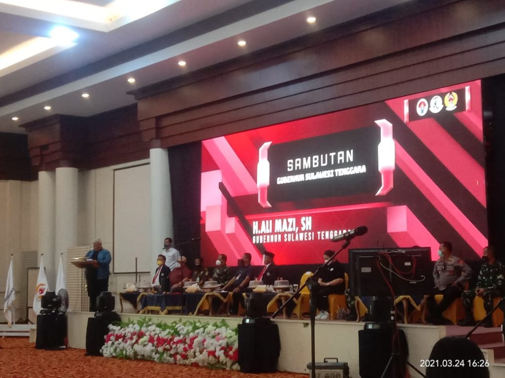 REPUBLIKNEWS.CO.ID, Kendari – Gubernur Sultra Ali Mazi menghadiri sekaligus membuka secara resmi Kejuaraan Nasional (Kejurnas) IX dan Liga Nasional (Liganas) Seri XI Junior dan Senior Muaythai Indonesia Tahun 2021 di Hotel Azizah Kendari, Rabu (24/03/2021).
