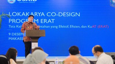 Lokakarya USAID ini fokus pada Co-desing program erat tata kelola pemerintahan yang efektif, efisien dan akuntabel. Adapun tiga daerah yang menjadi fokus kajian yakni Kota Makassar, Luwu Timur dan Kepulauan Selayar.