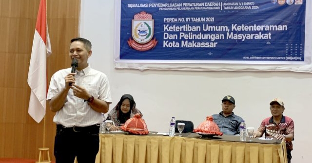 Hal itu disampaikannya saat sosialisasi penyebarluasan Peraturan Daerah (Perda) Nomor 7 Tahun 2021 tentang Ketertiban Umum, Ketentraman, dan Perlindungan Masyarakat di Hotel Continent Centerpoint, Makassar, Sabtu (10/2/2024).