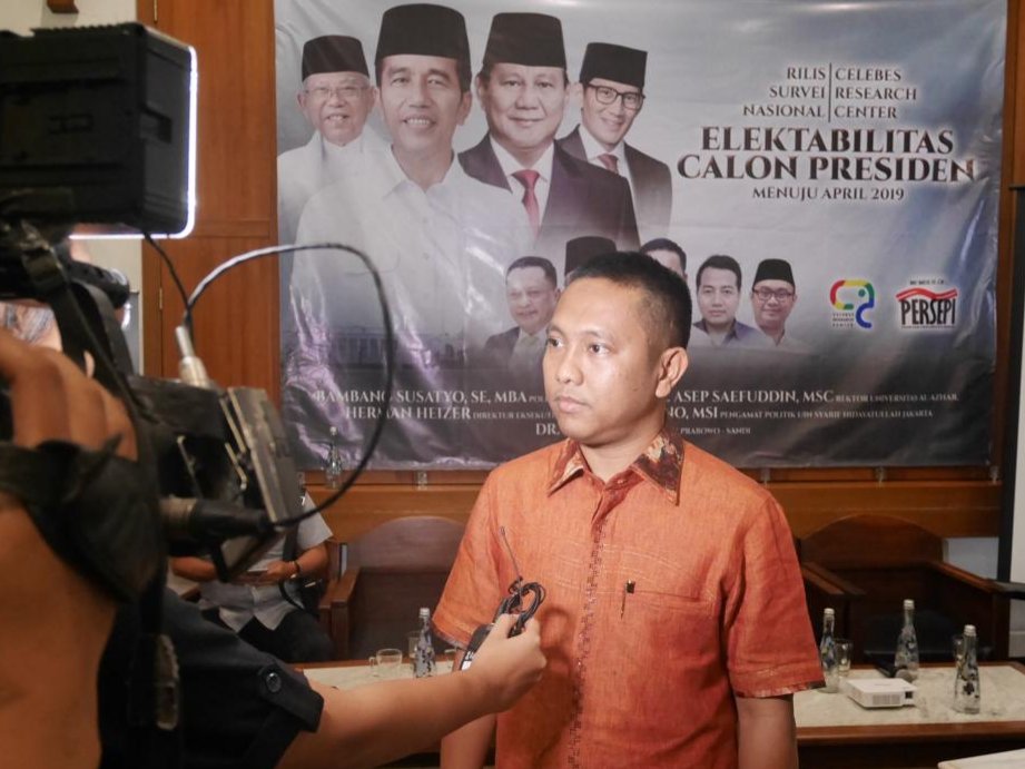 “Kalau pemilihan berlangsung hari ini, mayoritas masyarakat Indonesia akan memilih pasangan Jokowi-Ma’ruf dibandingkan Prabowo-Sandi,” kata Direktur Eksekutif Celebes Research Center (CRC), Herman Heizer kepada republiknews.co.id, saat dikonfirmasi via pesan singkat WhatsApp.