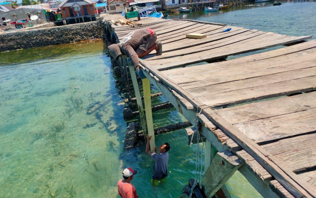 “Berkat bantuan dari beberapa warga sehingga bisa digunakan sementara untuk aktivitas sehari-hari kita dan tidak membuat was-was warga saat melintas di dermaga tersebut,” pungkasnya.