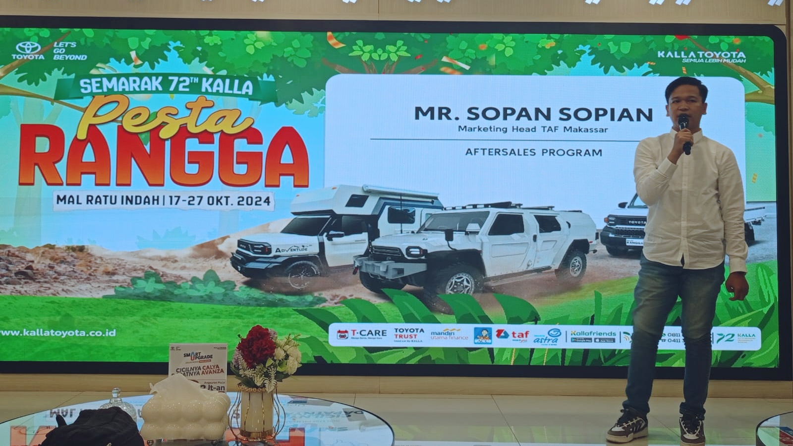 REPUBLIKNEWS.CO.ID, MAKASSAR — Pada Pagelaran Pesta Rangga Semarak 72 Tahun Kalla Toyota. Toyota Astra Finance (TAF) Makassar ikut ambil bagian dengan memberikan banyak paket-paket kendaaran terbaiknya.