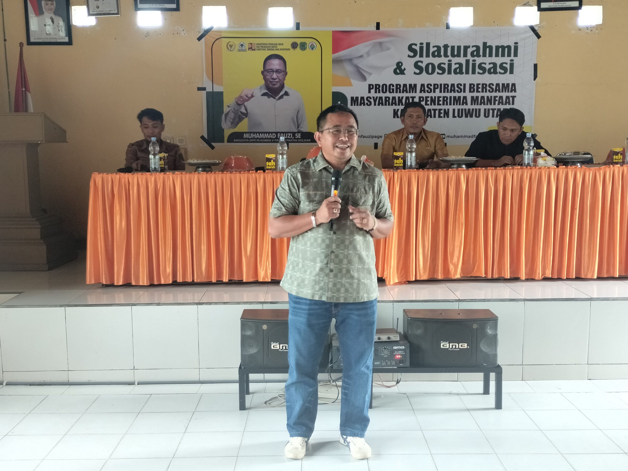 Bertempat di Aula Kantor Camat Masamba, Anggota Komisi V DPR RI Muhammad Fauzi menggelar silaturahmi dengan masyarakat penerima manfaat dan pemerintah desa yang ada di Kecamatan Masamba.