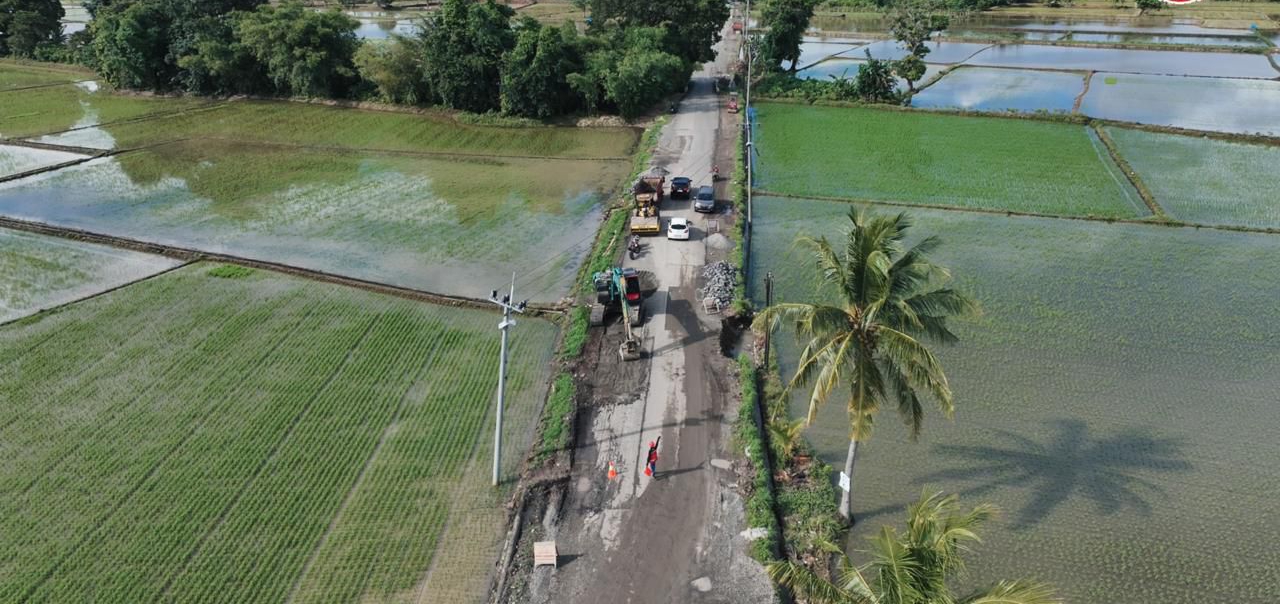 Pekerjaan yang sedang berjalan meliputi penyiapan badan jalan, perbaikan badan jalan, rekonstruksi kelas A (primer), pengaspalan di beberapa segmen, pembangunan talud, pasangan batu untuk saluran ngendong atau drainase kecil, saluran samping, serta pekerjaan bahu jalan selebar 1,5 meter dengan rigid beton kiri dan kanan.