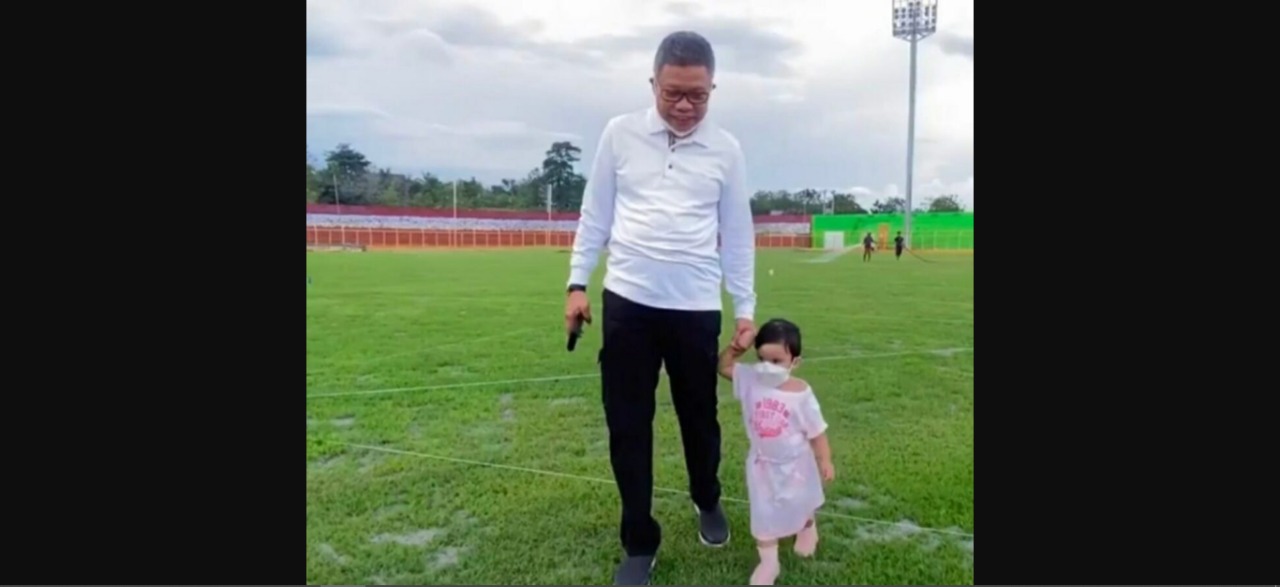 “Menikmati minggu sore bersama cucu tercinta, melihat langsung perkembangan pembenahan Stadion GBH untuk dapat melewati verifikasi Liga 1,” tulis Taufan Pawe di akun media sosial pribadinya.