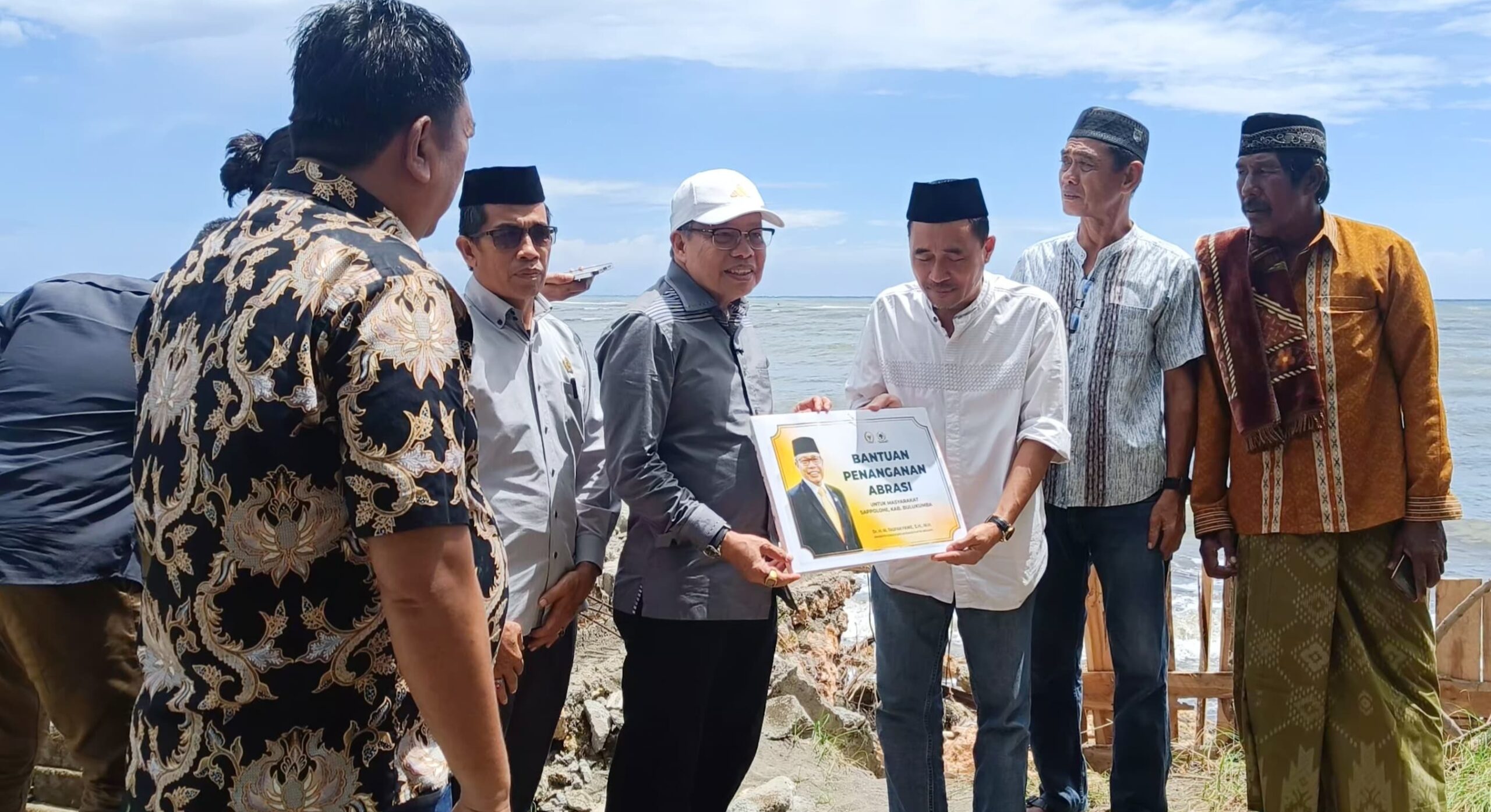 Dalam kunjungan tersebut, Taufan Pawe menyerahkan bantuan penanganan abrasi sebagai bentuk respons cepat terhadap ancaman bencana pesisir yang kian meluas.