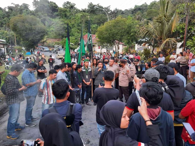 Ratusan mahasiswa dari HMI ini demo sejak beberapa hari yang lalu. Mereka menutup jalan poros hingga menyebabkan kemacetan jalan.