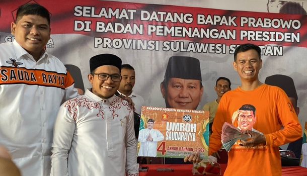 Sebagai bukti atas janjinya, Abdul Hamid dan Adlan membayar langsung biaya umrahnya ke Travel Al Jasiyah disaksikan tim dan relayan Saudarayya di Rumah Pemenangan Prabowo Presiden 2024, Jalan Haji Bau, Makassar.