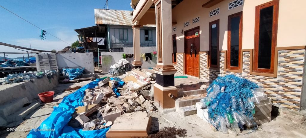 Akibatnya, 4 warga yang saat itu sedang melakukan pembibitan rumput laut dilokasi kejadian tertimpa reruntuhan teras rumah.