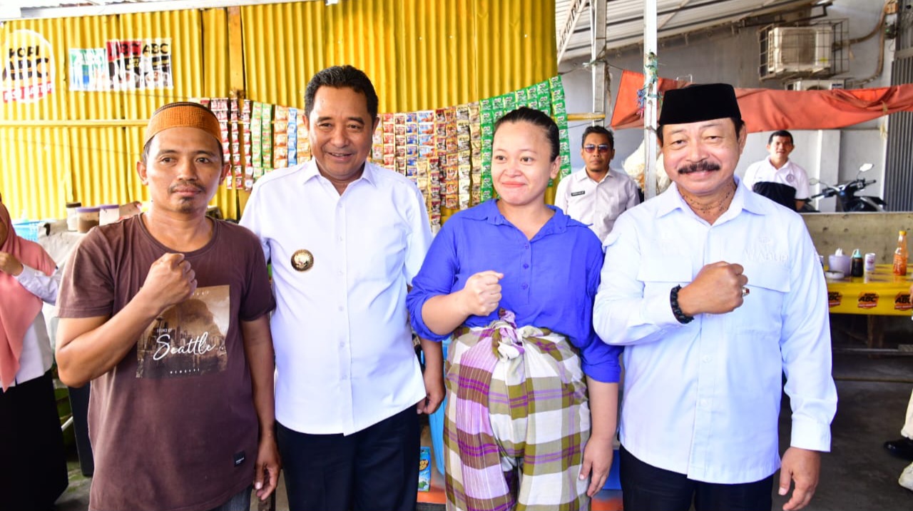 REPUBLIKNEWS.CO.ID, GOWA — Pemilik Warung Daffa di Jalan Hasanuddin, Kabupaten Gowa, Muhammad Ikhwar Muis Daeng Bantang dan istrinya Hasnaini, merasa senang setelah dikunjungi Pj Gubernur Sulsel Bahtiar Baharuddin, ditemani Wakil Bupati Gowa Abdul Rauf Malagani Karaeng Kio, untuk menyeruput kopi. Ini disela kegiatan Bahtiar usai melakukan operasi pasar di Pasar Minasa Maupa, Rabu (18/10/2023).
