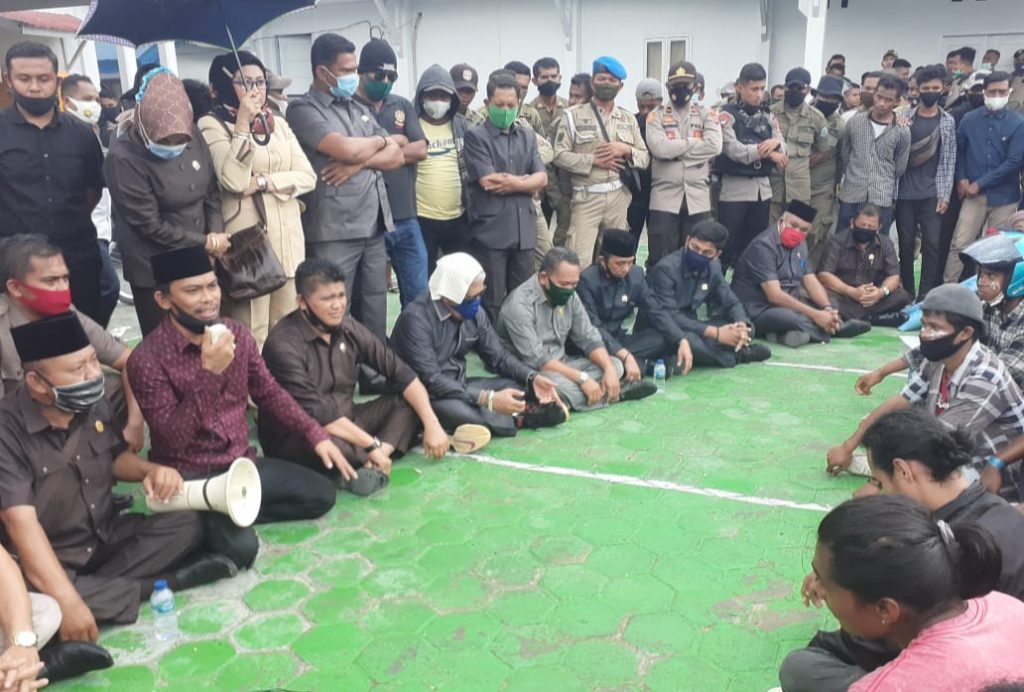 Ketua DPRD Buton Tengah (Buteng) Bobi Ertanto, menerima Massa Penolak Undang-Undang (UU) Omnibus Law, Senin (12/10/2020).