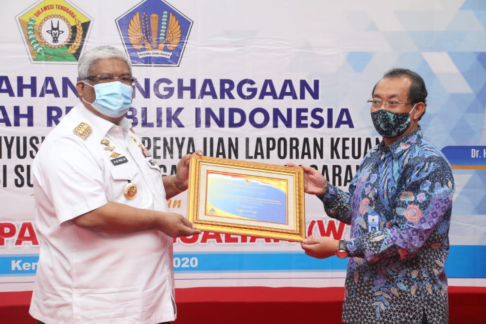 REPUBLIKNEWS.CO.ID, Kendari – Kementrian Keuangan Republik Indonesia memberikan penghargaan kepada Pemerintah Provinsi Sulawesi Tenggara (Pemprov Sultra) atas keberhasilan mempertahankan opini Wajar Tanpa Pengecualian (WTP) selama tujuh tahun berturut-turut yaitu sejak 2013-2019, di Rujab Gubernur Sultra, Rabu (04/11/20).