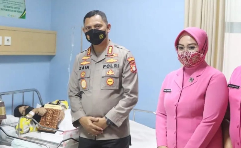 Zain bersama pejabat PJU Polres Metro Tangerang Kota didampingi para ibu bhayangkari datang membawa bingkisan dan bantuan ibu melahirkan putra dan putri nya tepat di hari Bhayangkara ke-76, 1 Juli 2022.