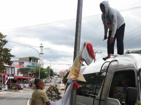 Salah satu tim yang terpantau, Rabu (30/09/2020) yakni Tim HI HC langsung menertibkan alat peraga kampanye Paslon yang terletak pada kolom kiri yaitu Andi Kaswadi Razak-Luthfi Halide.
