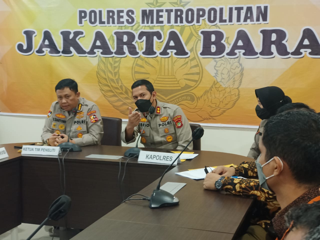 Tim Puslitbang Polri yang dipimpin langsung oleh Ketua Supervisi, Kombes Pol FX Surya Kumara, dan Ketua Tim Peneliti, Kombes Pol Frans Tjahyono, Beserta anggota disambut baik oleh para pejabat utama Polres Metro Jakarta Barat di Ruang Rapat Lantai 4.