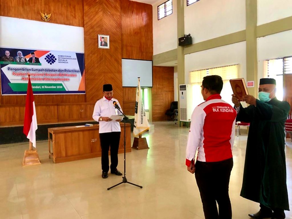 REPUBLIKNEWS.CO.ID, Kendari – Mendukung peningkatan kinerja Balai Latihan Kerja (BLK) Kendari, dalam memberikan pelayanan terhadap masyarakat, Kepala BLK Kendari Dr. La Ode Haji Polondu lantik Pejabat Fungsional Arsiparis H Abdul Jalil Bar S.Kom., M M, di aula serba guna BLK Kendari pada Rabu (18/11/2020).
