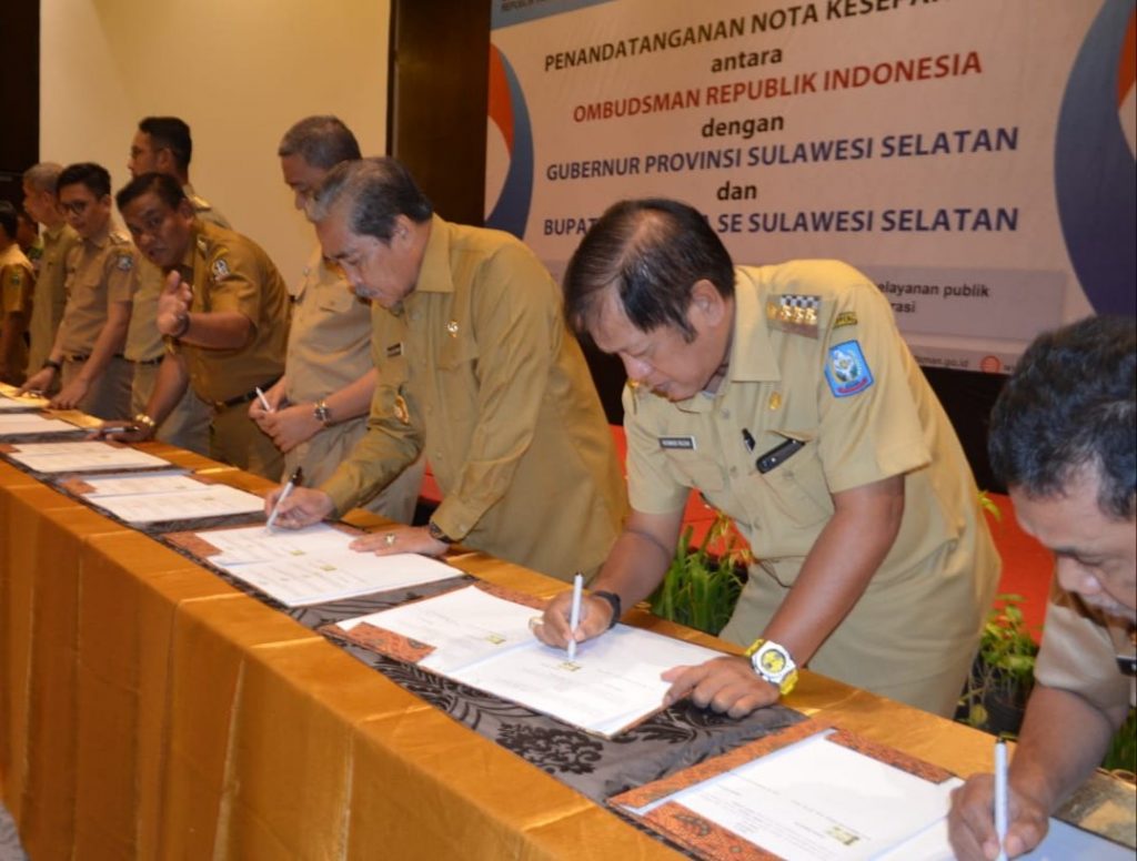 REPUBLIKNEWS.CO.ID, MAKASSAR — Penandatanganan Nota Kesepahaman atau MoU antara Ombusman (RI) dengan Pemerintah Provinsi Sulsel serta Pemerintah Kabupaten Kota dan Kabupaten se-Sulawesi Selatan berlangsung di Hotel Novotel Makassar, Senin (01/04/2019)