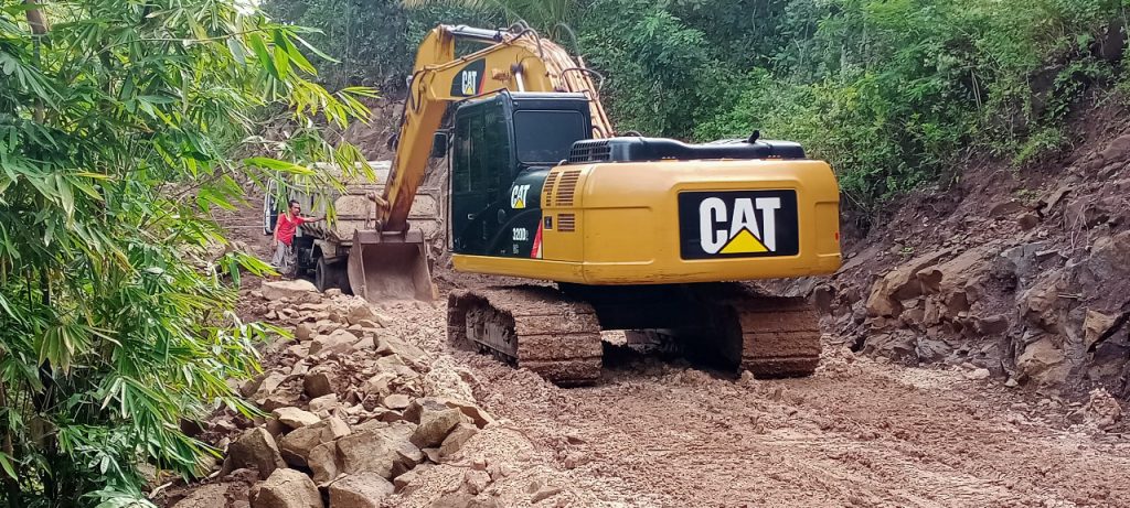 Seperti hari Jumat (09/07/2021) untuk membantu meratakan jalan yang akan ditimbun dan dipenuhi lumpur., sebuah alat berat dikerahkan