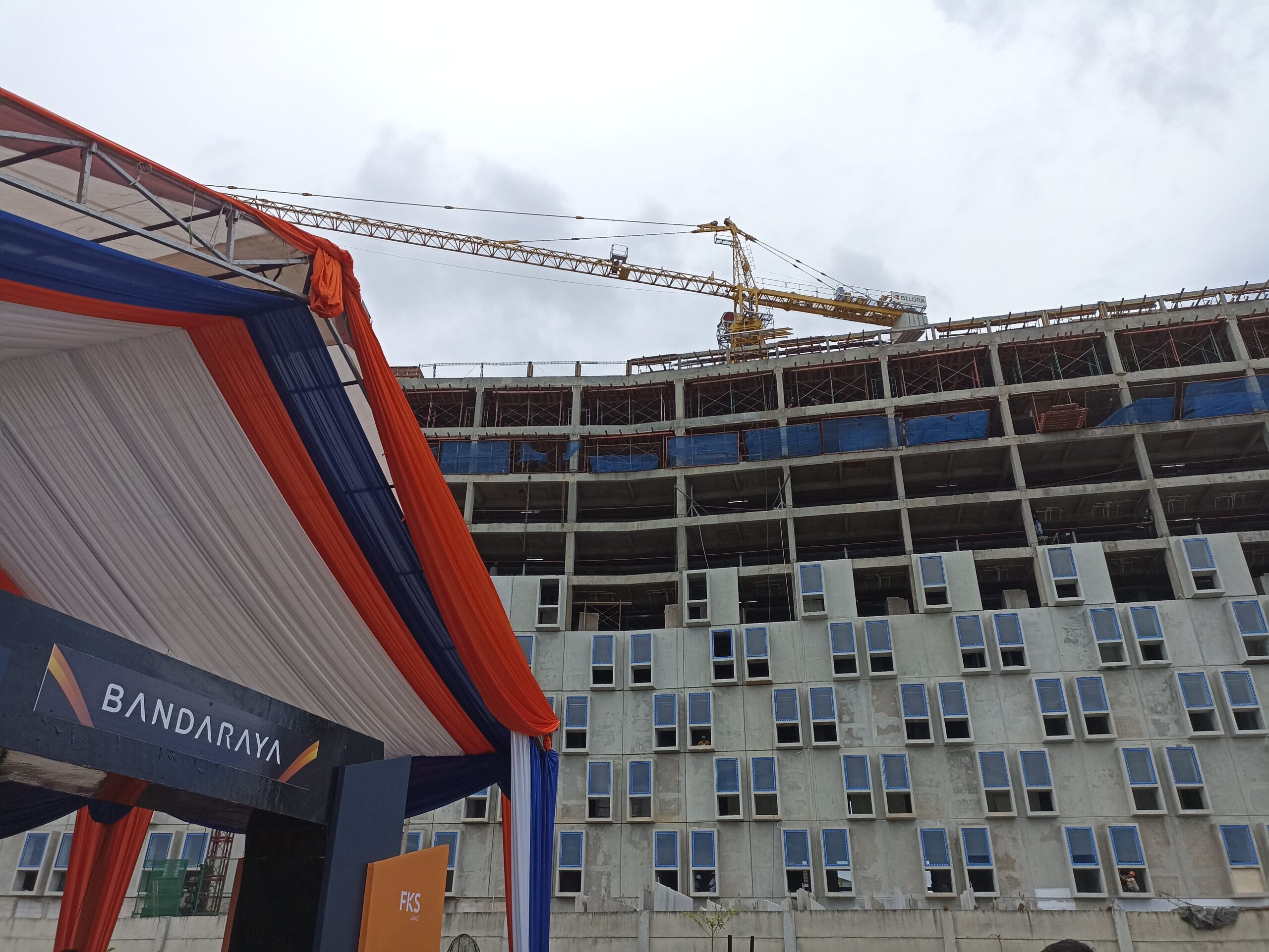 “Hari ini kita bersama-sama untuk melakukan prosesi tutup atap dari salah satu tower Bandaraya yaitu Tower Banda yang secara struktur infrastruktur itu dinyatakan selesai. Rencananya, khusus Tower Banda akan diserah terimakan pada Agustus 2023 mendatang,” kata Chief Financial Officer FKS Land Budiman Arpan di sela-sela Topping Off Cerimony Bandaraya, Jumat (25/11/2022).