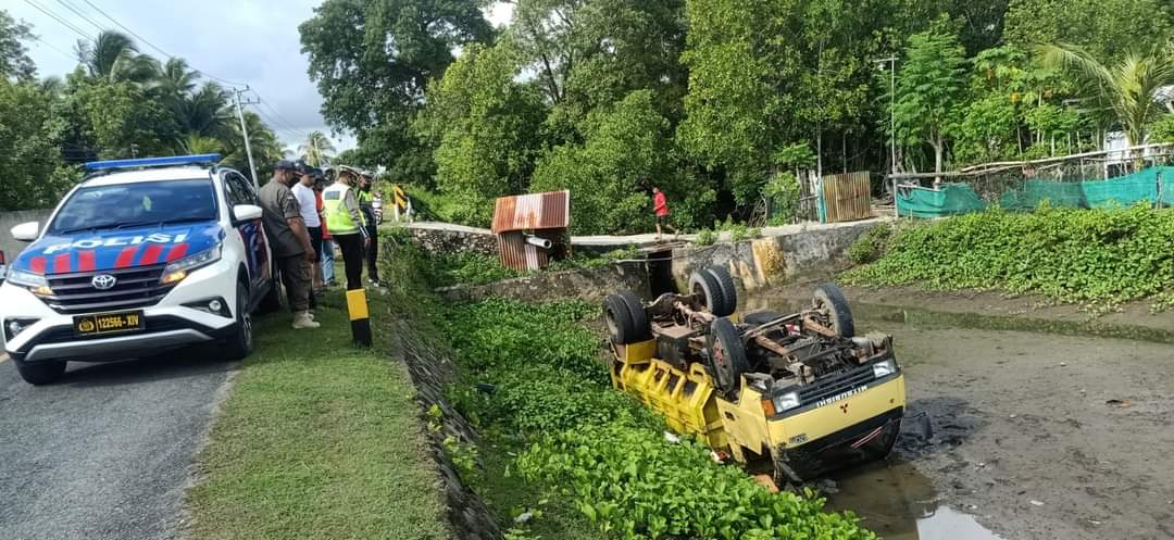 Namun menjelang beberapa saat mobil tiba-tiba berak sendiri dan akhirnya terguling.