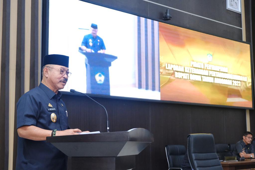 “Dalam dokumen ini memuat laporan tahun 2023 terdiri dari lima bab, yaitu pendahuluan, penjabaran APBD, penyelenggaraan urusan pemerintahan yang menjadi kewenangan daerah, dan capaian kinerja pelaksanaan tugas pembantuan dan penugasan serta penutup,” ungkapnya.