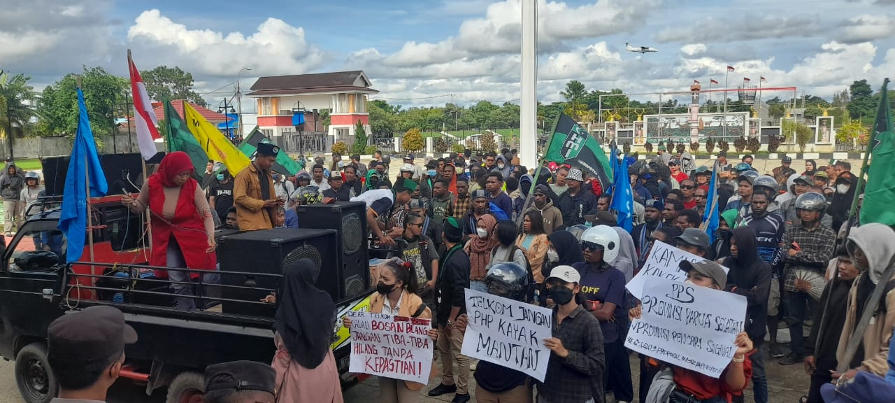 Sebagai mana unjuk rasa sebelumnya, aksi kali ini dilaksanakan di dua titik yakni Kantor Bupati dan di Kantor Telkom Merauke.
