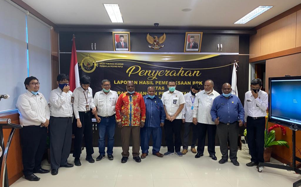 Bupati Tolikara Usman G Wanimbo yang didampingi oleh Kepala Keuangan dan Aset Pemda Tolikara Samuel Kogoya S.H, serta beberapa pimpinan OPD Hadir langsung di kantor BPK Provinsi Papua di Jayapura, Rabu (19/08/2020).