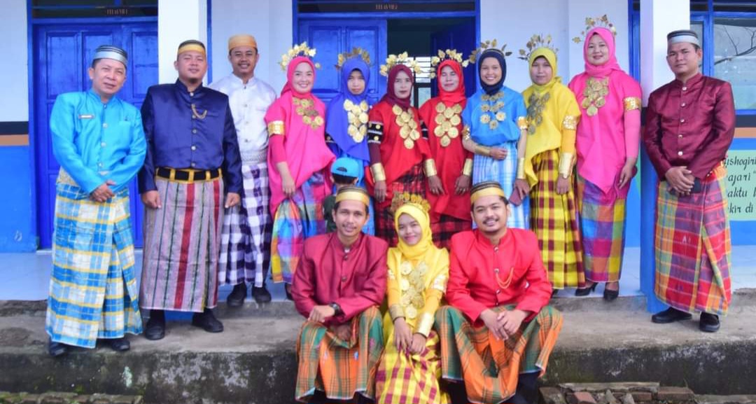 Uniknya Upacara bendera itu digelar di halaman Sekolah dengan mengenakan pakaian adat daerah.