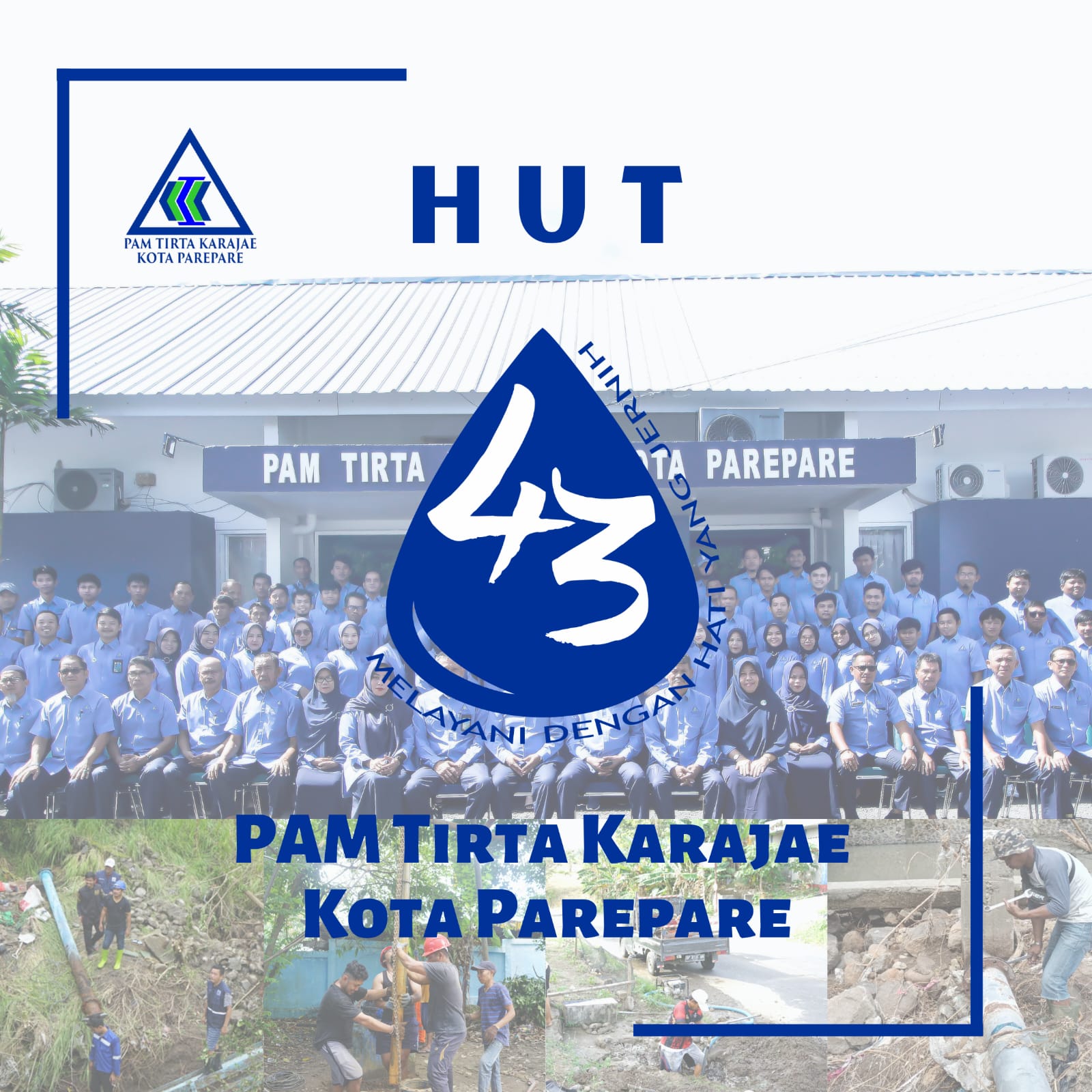“PAM Tirta Karajae Kota Parepare memperingati hari ulang tahun ke-43 pada tanggal 15 April 2023. Terima kasih telah senantiasa mempercayakan kami untuk mengalirkan air bersih ke seluruh sudut Kota Parepare. Dengan semangat pelayanan prima kami akan selalu meningkatkan kualitas dan memberikan yang terbaik untuk pelanggan setia PAM Tirta Karajae,” kata Direktur PAM Tirta Karajae, Andi Firdaus Djollong.