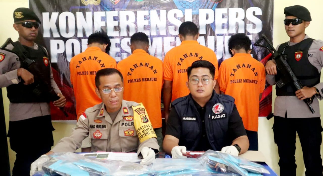 Keempat orang pelaku pengedar ganja masing-masing berinisial MGM, JA, SK dan YW. Empat pelaku sebelumnya ditangkap di Jalan Martadinatha dan Jalan Onggatmit Merauke, Minggu (12/05/2024).