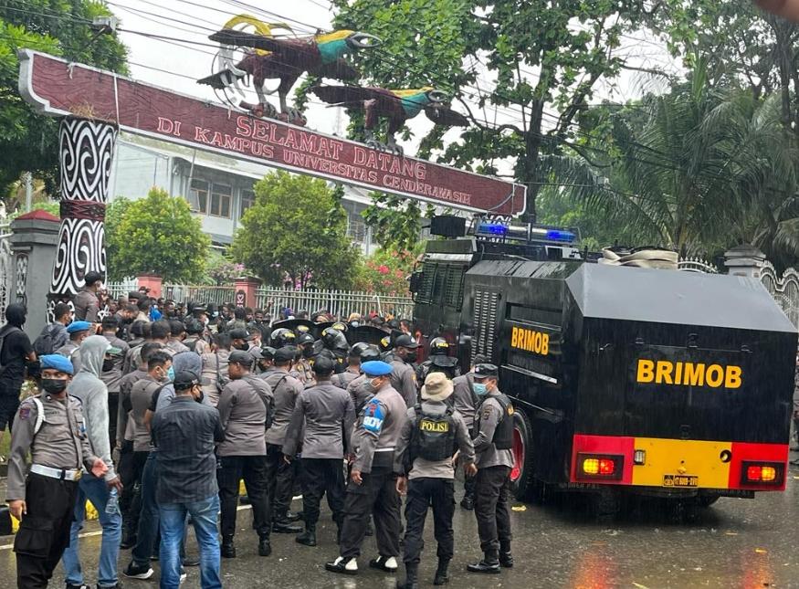Peserta aksi sempat bersitegang dengan aparat keamanan. Bahkan, aparat kepolisian sempat mengeluarkan tembakan gas air mata untuk memukul mundur para pendemo.