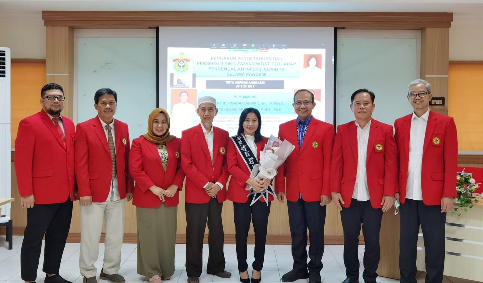 - drg. Tirta Asprimi Angraeni, M.KG., Sp.KG., dengan judul tesis “Pengaruh Pengetahuan dan Persepsi Resiko Endodontist terhadap Pengendalian Infeksi COVID-19 selama Pandemi.