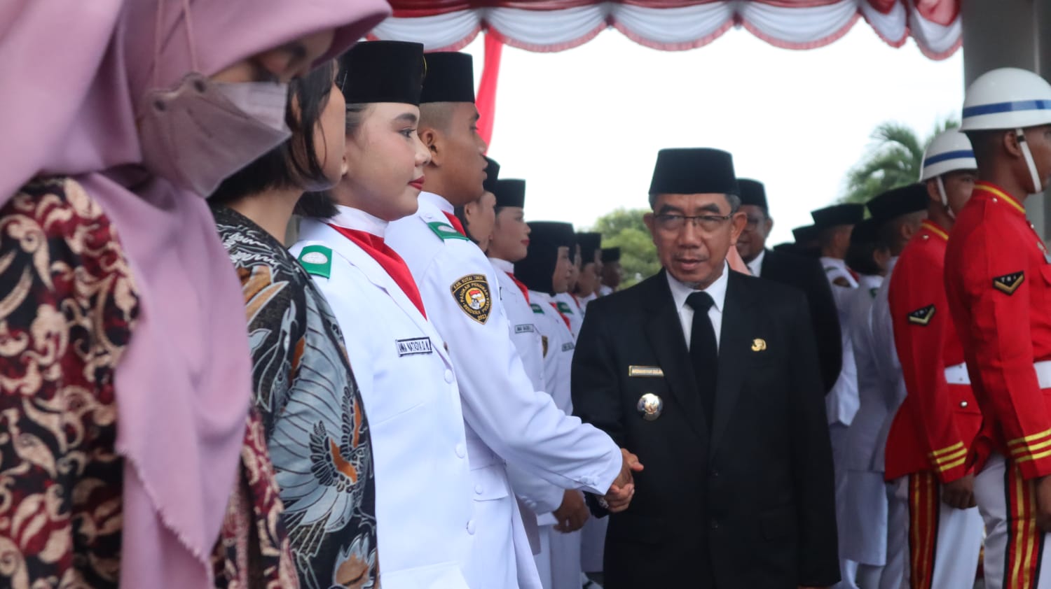 Acara selanjutnya, Bupati Ardiansyah, Wabup Kasmidi Bulang, Forkopimda, Ketua DPRD Kutim Joni, Sekda Rizali Hadi dan pejabat esselon Pemkab Kutim memberikan ucapan selamat kepada semua Paskibraka Kabupaten Kutim.
