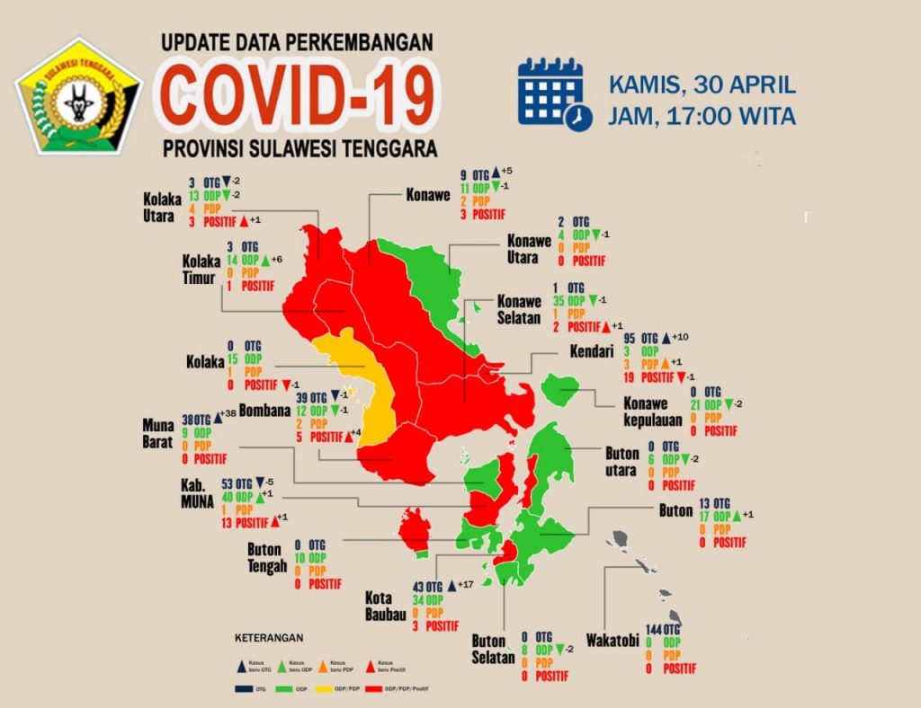 Dari posko gugus tugas provinsi Sultra, juru bicara gugus tugas penanganan covid-19 provinsi Sulawesi Tenggara, Dr. Rabiul awal mengumumkan update kasus konfirmasi positif corona Wilayah Sulawesi Tenggara.