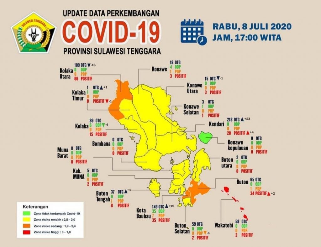 REPUBLIKNEWS.CO.ID, KENDARI — Kondisi pandemi wilayah Provinsi Sulawesi Tenggara (Sultra) masih terus menunjukkan angka penularan. Hal tersebut terlihat dari penambahan angka kasus positif yang dilaporkan oleh Tim Gugus Tugas Percepatan Penanganan Covid-19 Sultra, Rabu (08/07/2020).