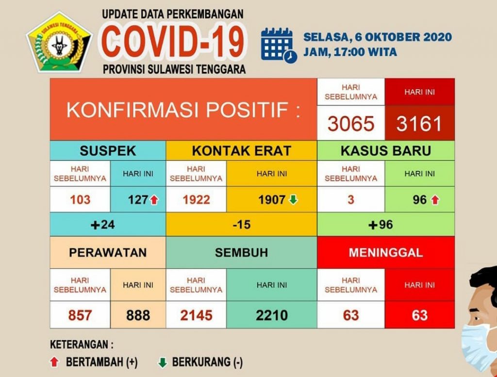 Update Covid-19 Sultra, 06 Oktober 2020: 3.161 Kasus Positif dan 2.210 Sembuh