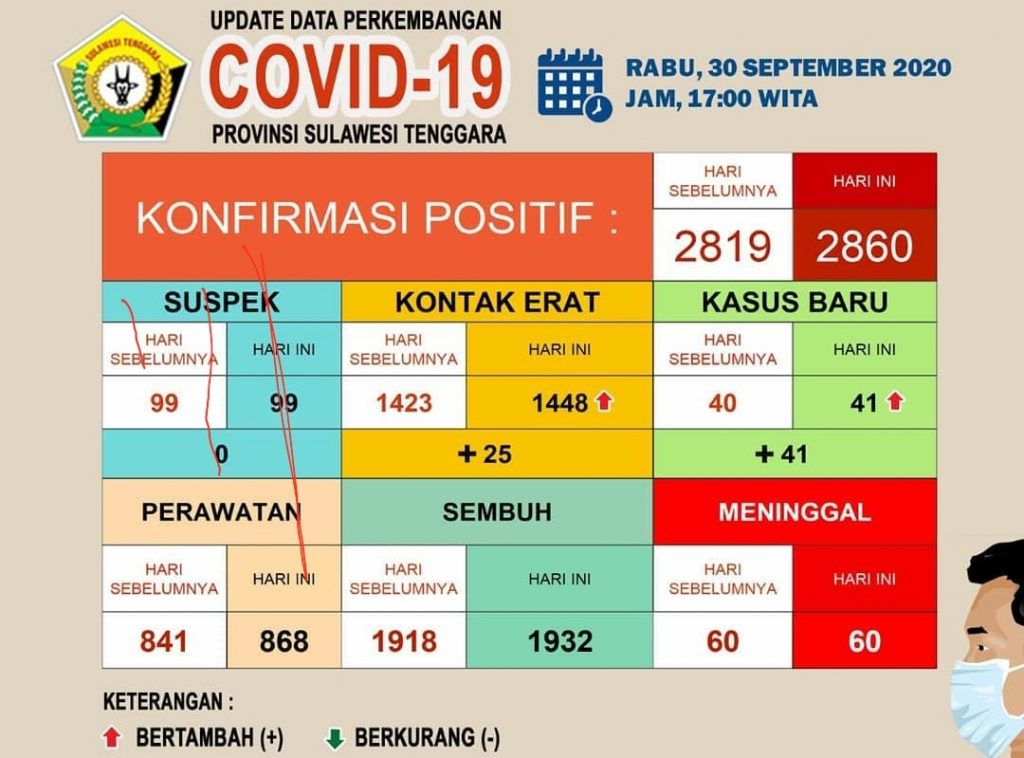 Update kasus Covid-19 Sulawesi Tenggara, Rabu (30/09/2020).